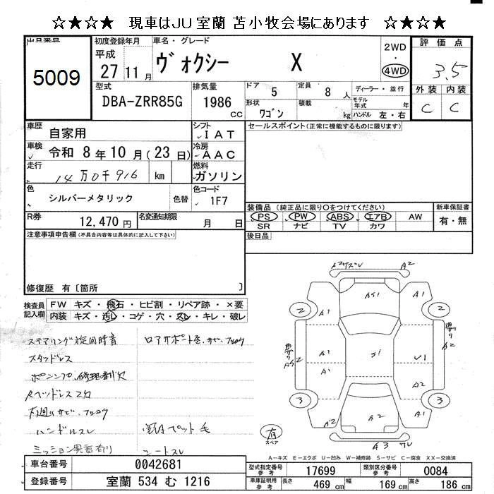 TOYOTA VOXY 2015 г., лот № 5009