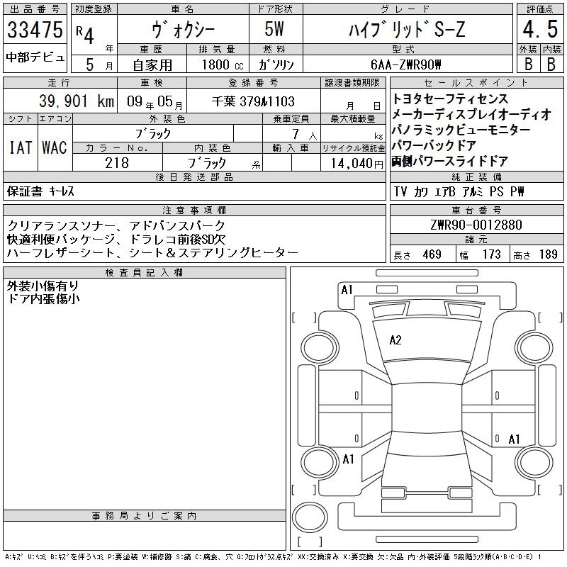 TOYOTA VOXY 2022 г., лот № 33475