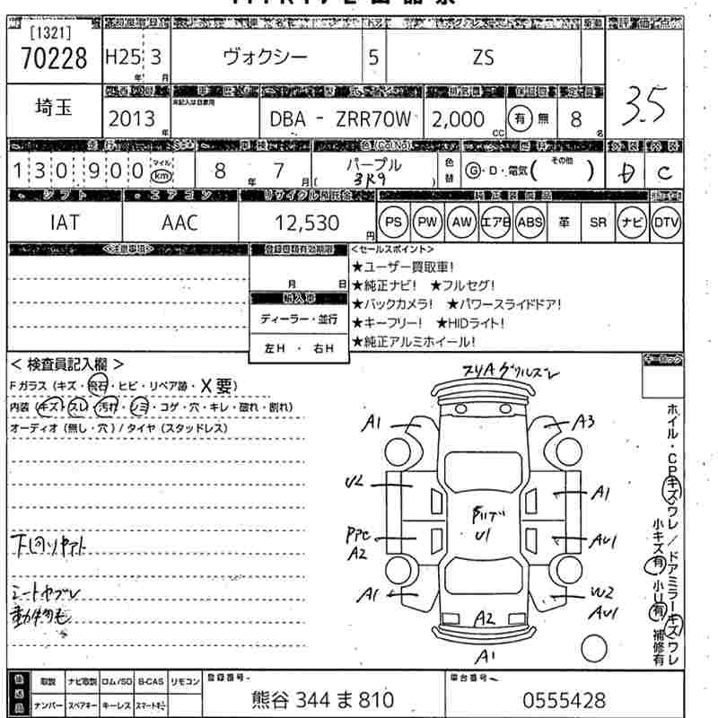 TOYOTA VOXY 2013 г., лот № 70228