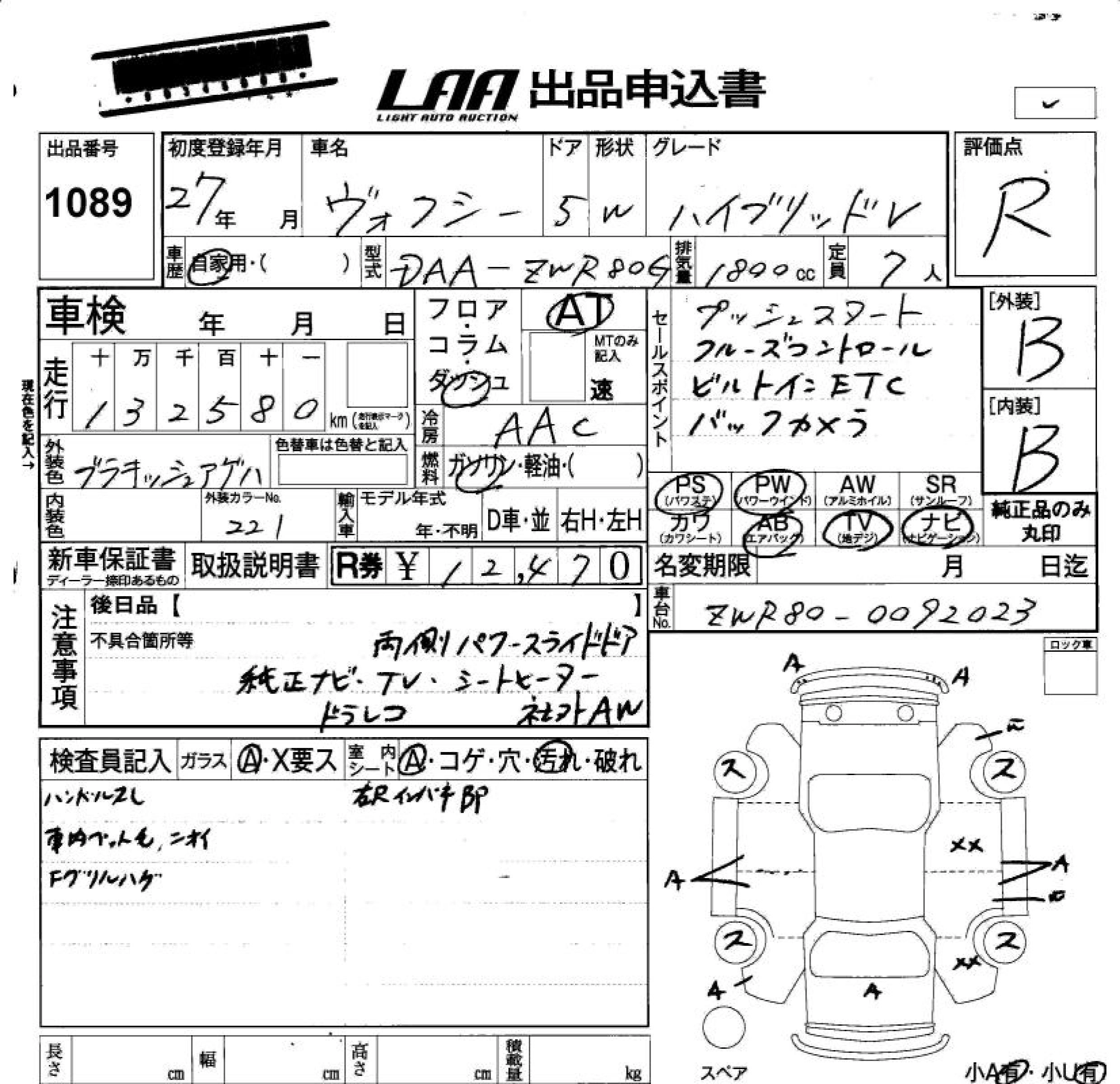 TOYOTA VOXY 2015 г., лот № 1089