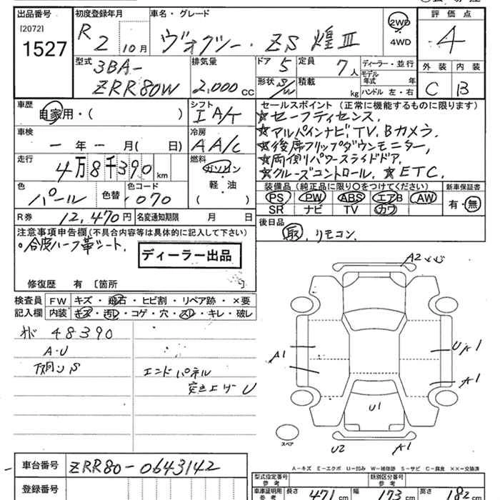 TOYOTA VOXY 2020 г., лот № 1527