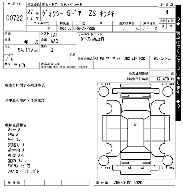 TOYOTA VOXY 2015 г., лот № 722