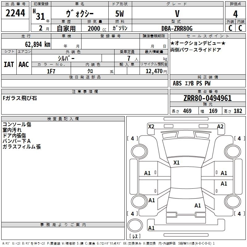 TOYOTA VOXY 2019 г., лот № 2244