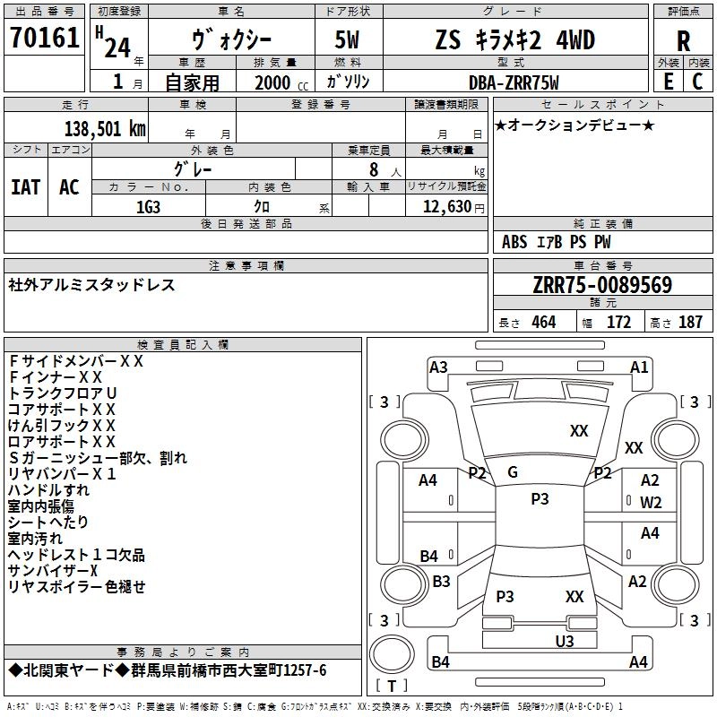 TOYOTA VOXY 2012 г., лот № 70161