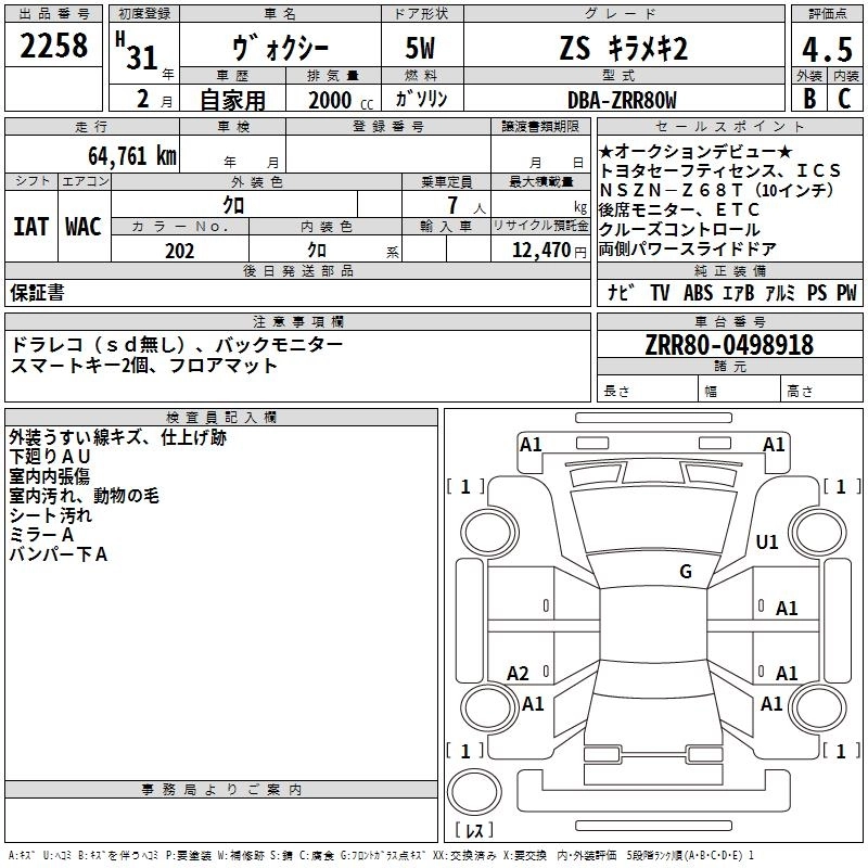 TOYOTA VOXY 2019 г., лот № 2258