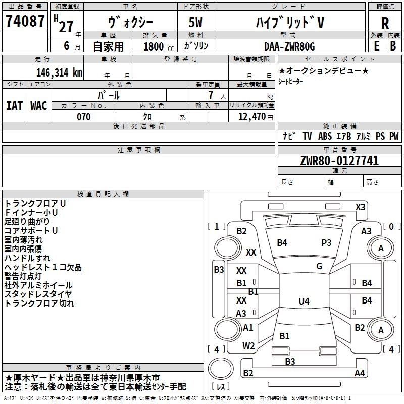 TOYOTA VOXY 2015 г., лот № 74087