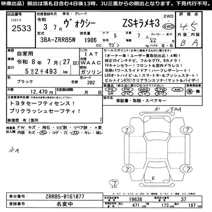 TOYOTA VOXY 2021 г., лот № 2533