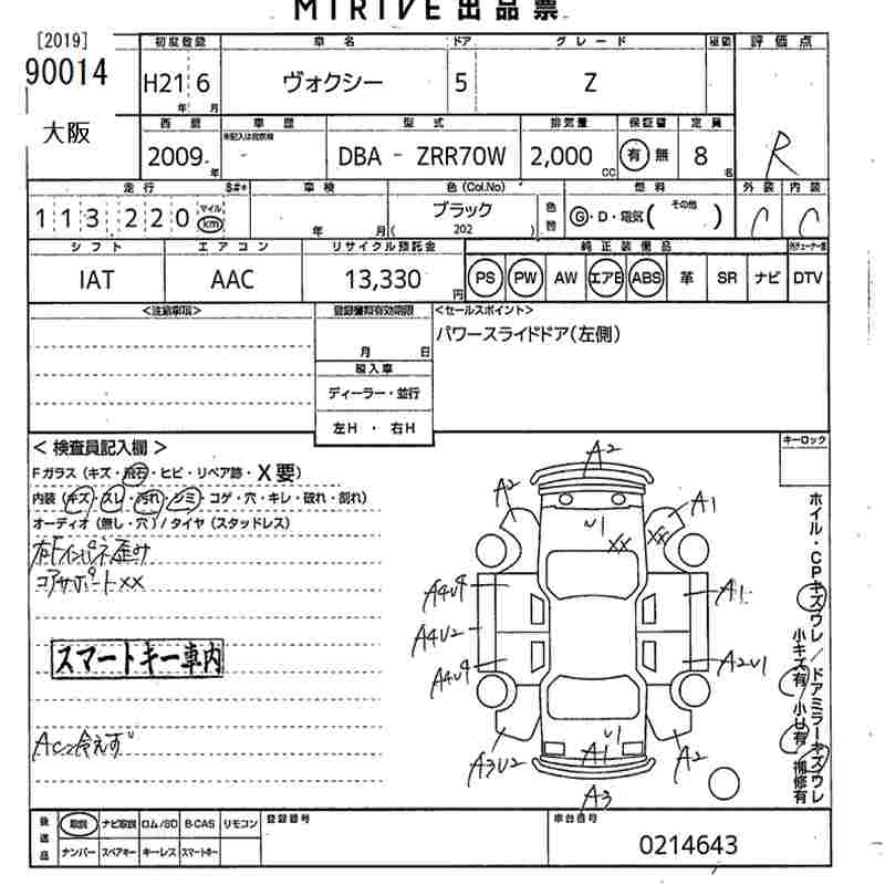 TOYOTA VOXY 2009 г., лот № 90014