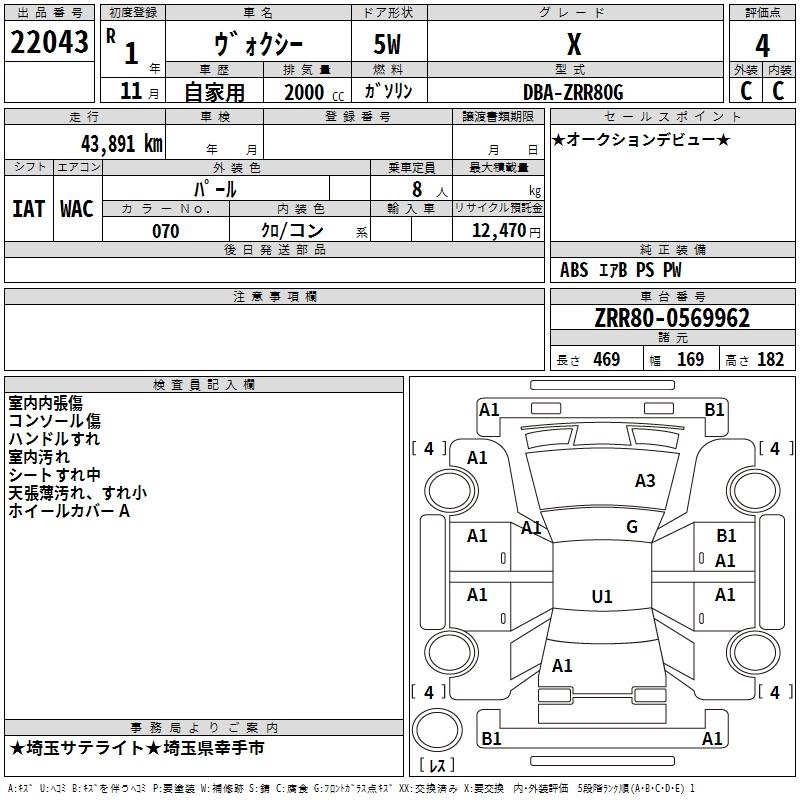 TOYOTA VOXY 2019 г., лот № 22043