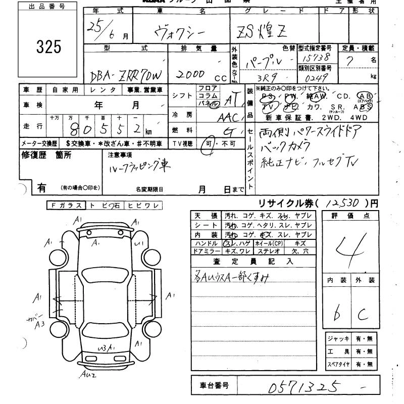 TOYOTA VOXY 2013 г., лот № 325