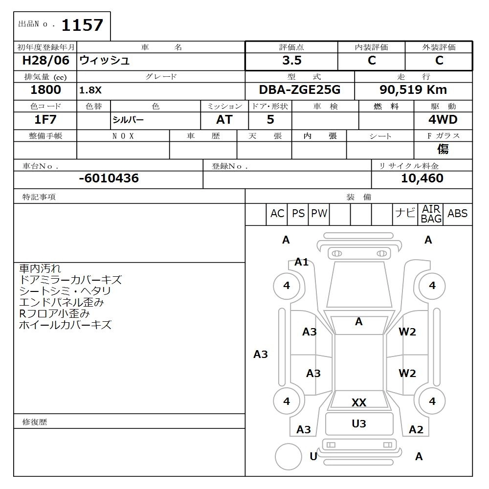 TOYOTA WISH 2016 г., лот № 1157