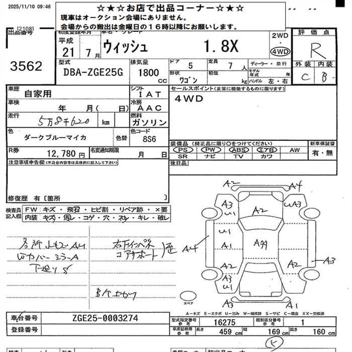TOYOTA WISH 2009 г., лот № 3562