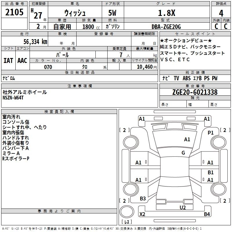 TOYOTA WISH 2015 г., лот № 2105