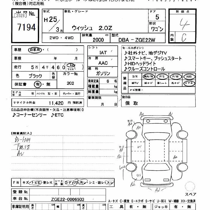 TOYOTA WISH 2013 г., лот № 7194