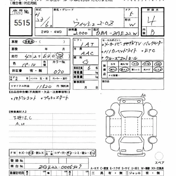 TOYOTA WISH 2011 г., лот № 5515