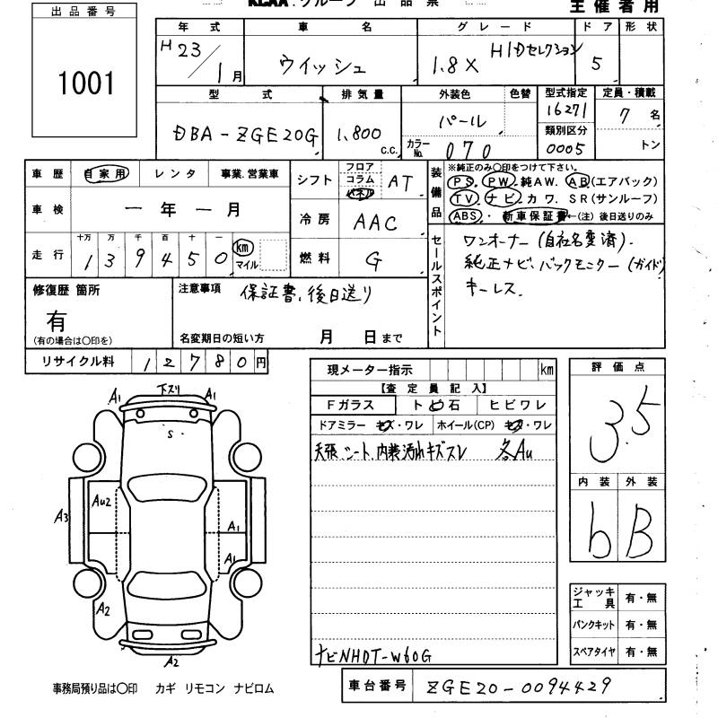 TOYOTA WISH 2011 г., лот № 1001