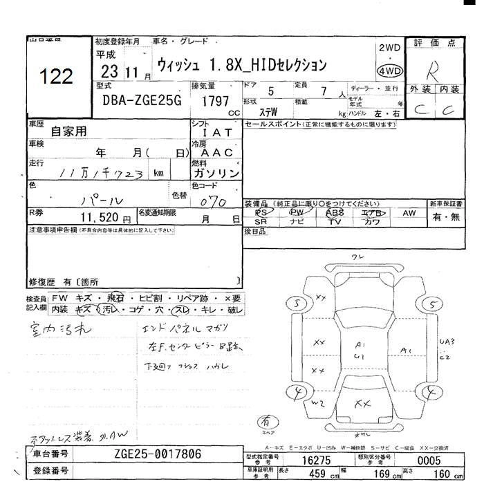 TOYOTA WISH 2011 г., лот № 122