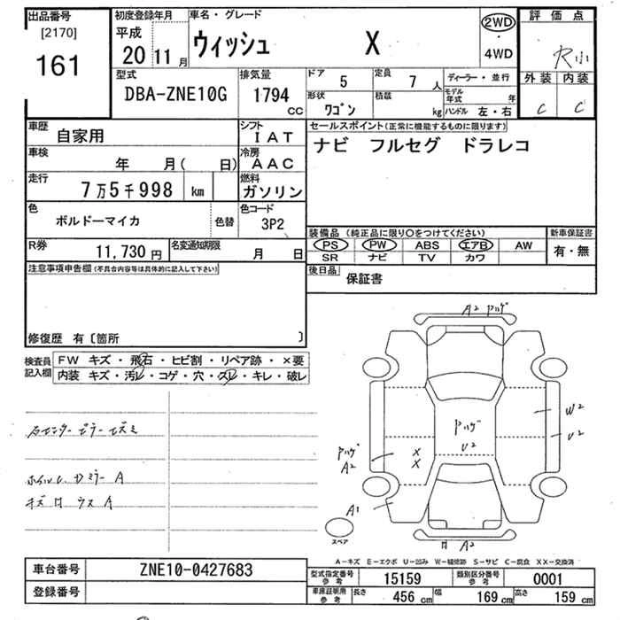 TOYOTA WISH 2008 г., лот № 161