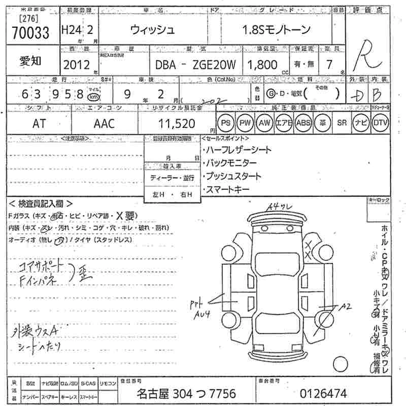 TOYOTA WISH 2012 г., лот № 70033