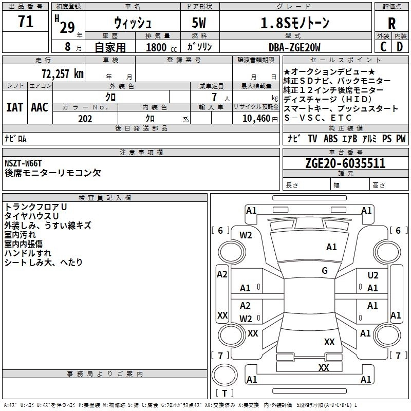 TOYOTA WISH 2017 г., лот № 71