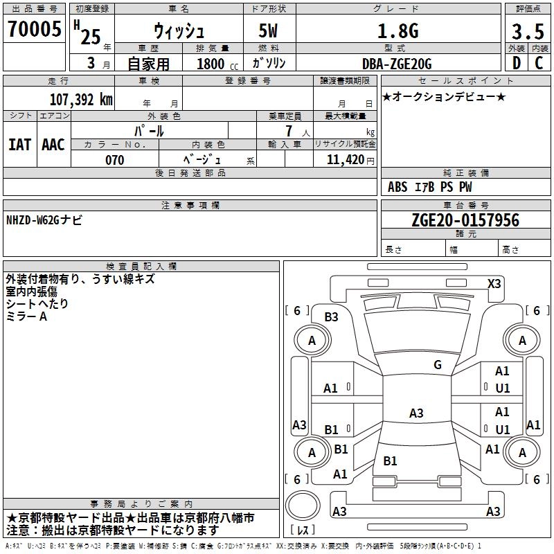 TOYOTA WISH 2013 г., лот № 70005