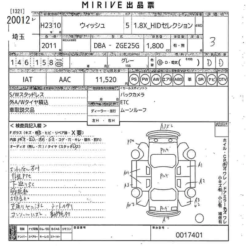 Статус выставлен на аукцион Лот 20012 Аукцион MIRIVE Saitama Дата аукциона 11.03.2026
