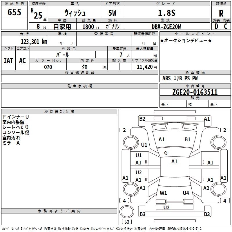 TOYOTA WISH 2013 г., лот № 655