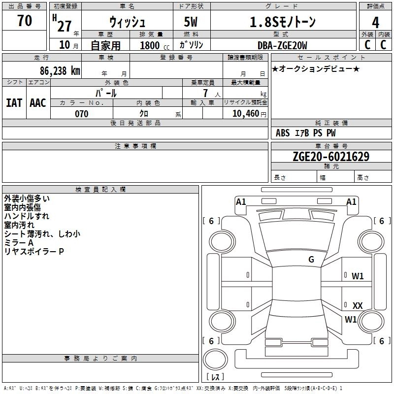 TOYOTA WISH 2015 г., лот № 70