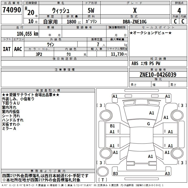 Статус выставлен на аукцион Лот 74090 Аукцион TAA Shikoku Дата аукциона 10.03.2026