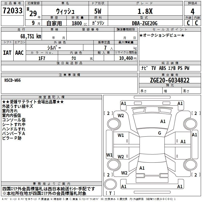 TOYOTA WISH 2017 г., лот № 72033