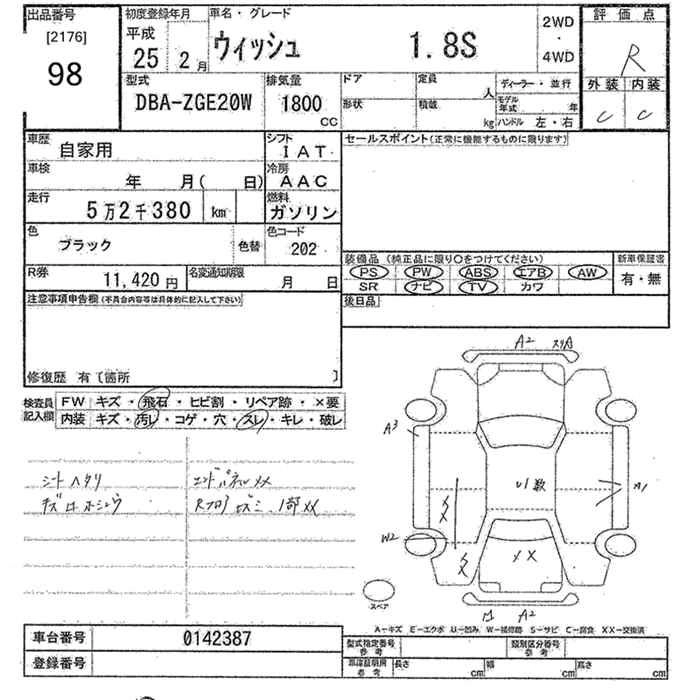 TOYOTA WISH 2013 г., лот № 98
