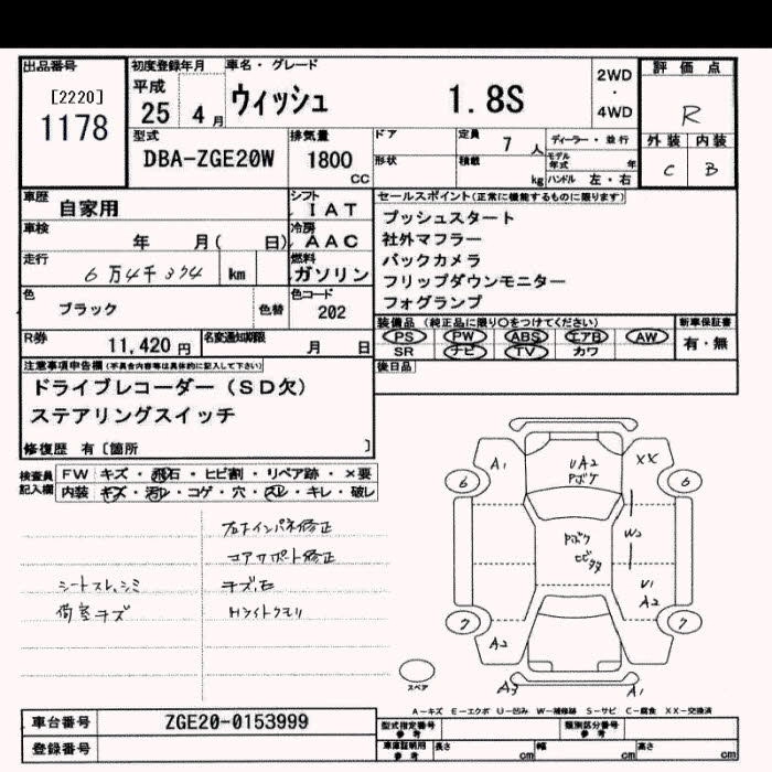 TOYOTA WISH 2013 г., лот № 1178