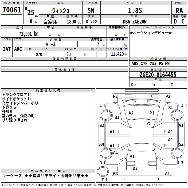 TOYOTA WISH 2013 г., лот № 70061