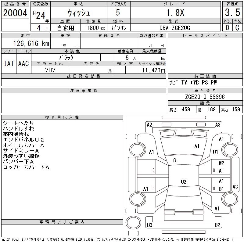 TOYOTA WISH 2012 г., лот № 20004