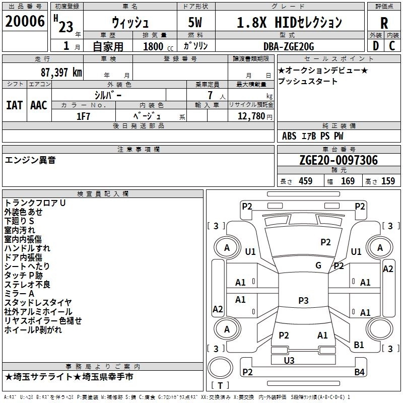 TOYOTA WISH 2011 г., лот № 20006