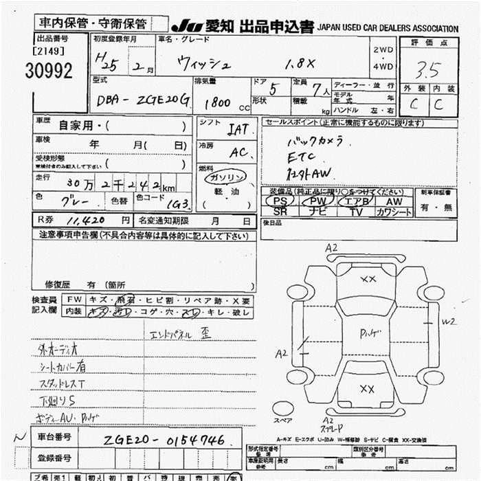 TOYOTA WISH 2013 г., лот № 30992