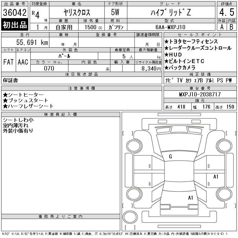Стартовая цена авто на аукционе 1 380 000 ¥
