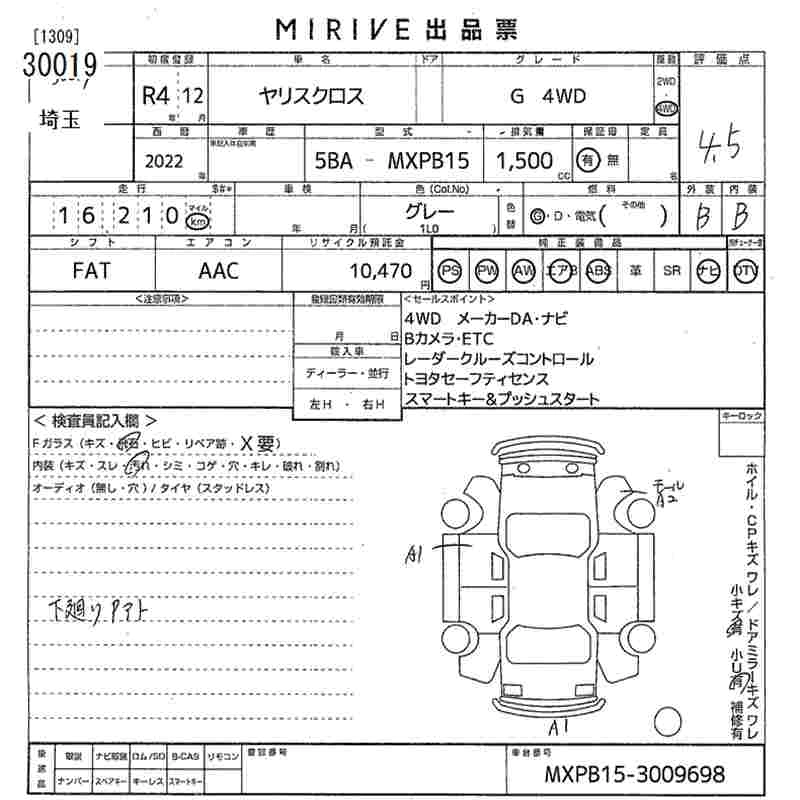 TOYOTA YARIS CROSS 2022 г., лот № 30019