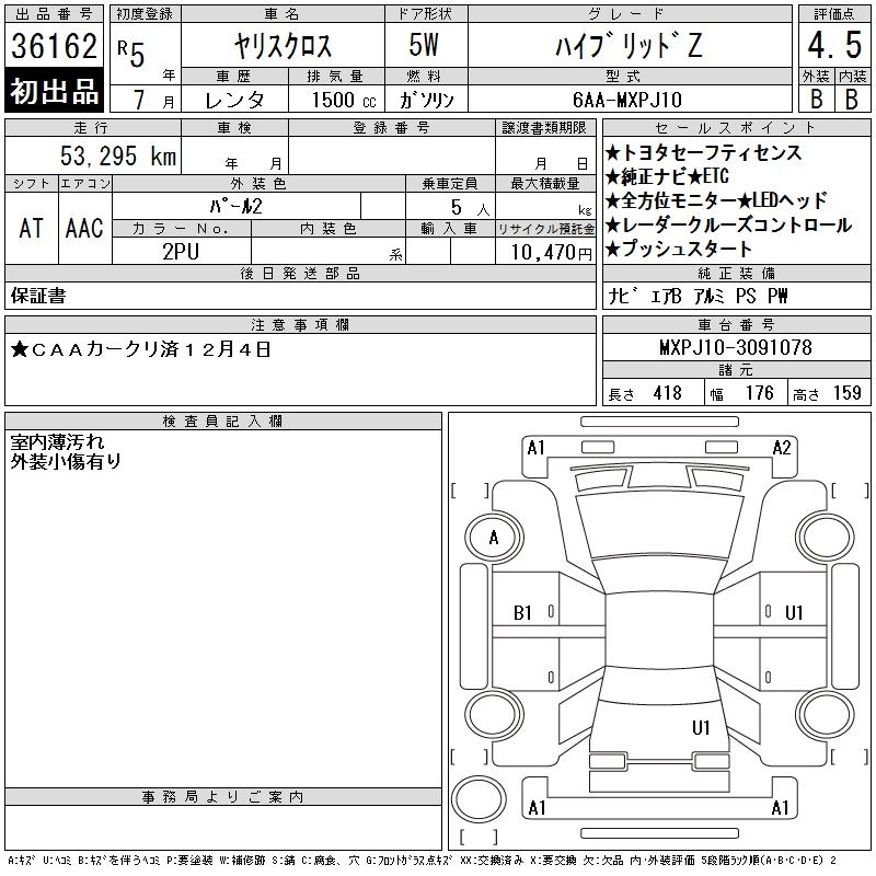 Статус выставлен на аукцион Лот 36162 Аукцион CAA Chubu Дата аукциона 10.12.2025