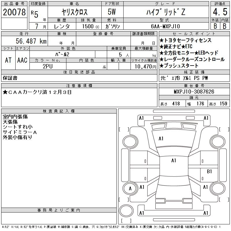 Статус выставлен на аукцион Лот 20078 Аукцион CAA Chubu Дата аукциона 24.12.2025