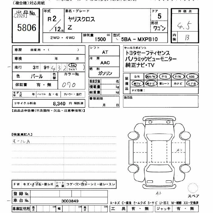 TOYOTA YARIS CROSS 2020 г., лот № 5806