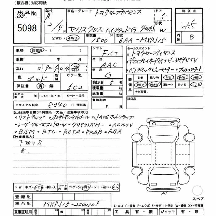 TOYOTA YARIS CROSS 2020 г., лот № 5098