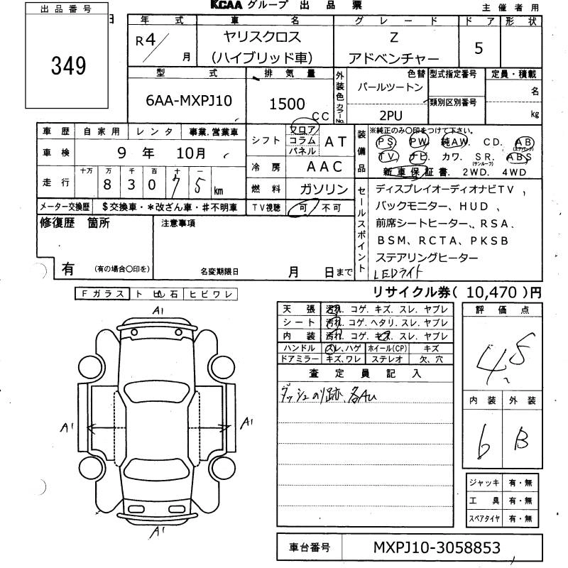 TOYOTA YARIS CROSS 2022 г., лот № 349