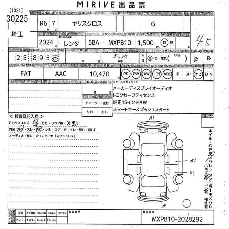 Статус выставлен на аукцион Лот 30225 Аукцион MIRIVE Saitama Дата аукциона 11.03.2026