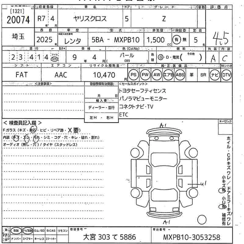 Статус выставлен на аукцион Лот 20074 Аукцион MIRIVE Saitama Дата аукциона 11.03.2026
