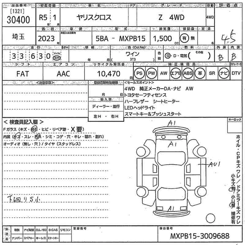 TOYOTA YARIS CROSS 2023 г., лот № 30400