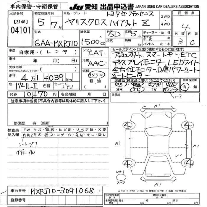 Статус выставлен на аукцион Лот 4101 Аукцион JU Aichi Дата аукциона 12.03.2026