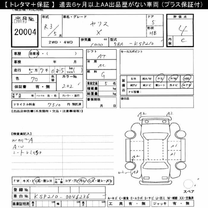 TOYOTA YARIS 2021 г., лот № 20004