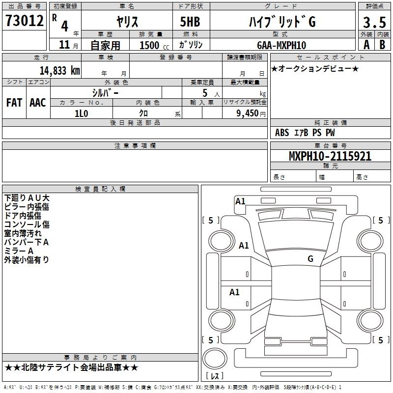 Статус выставлен на аукцион Лот 73012 Аукцион TAA Chubu Дата аукциона 11.12.2025