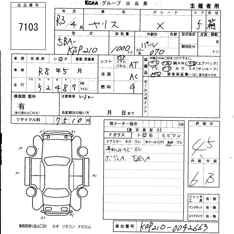 Статус продан Лот 7103 Аукцион KCAA Fukuoka Дата аукциона 25.12.2025